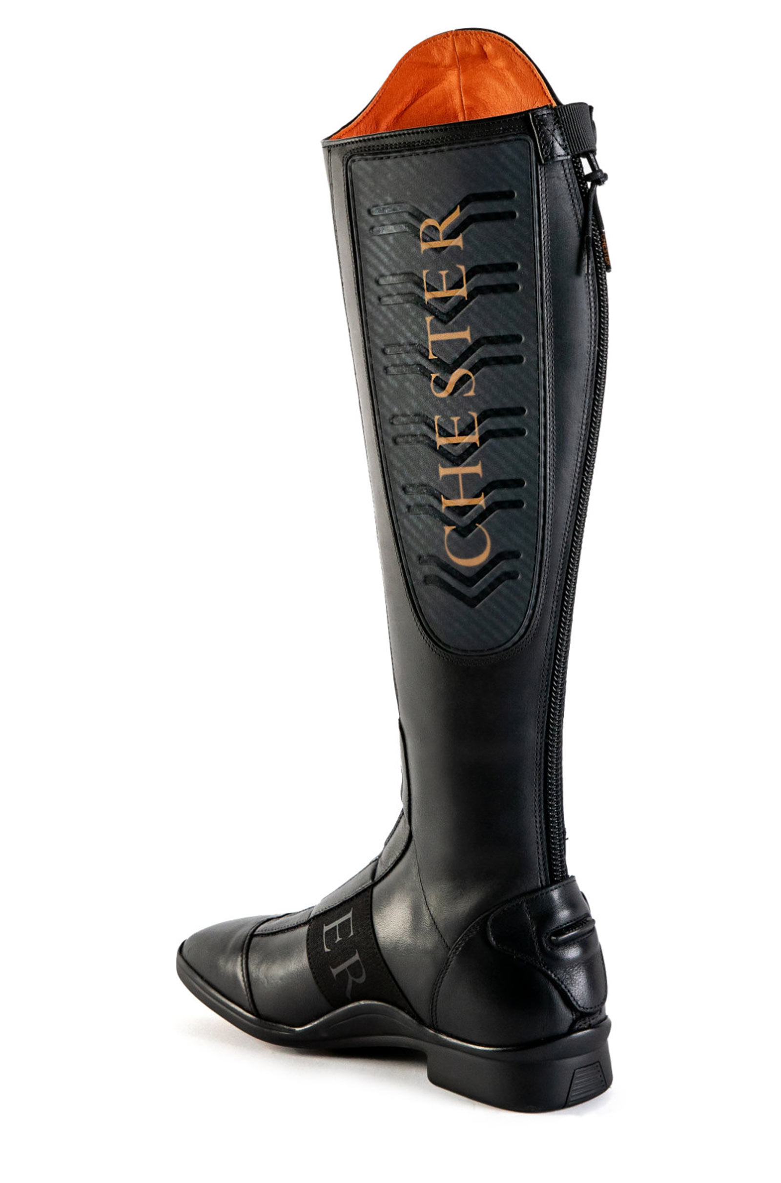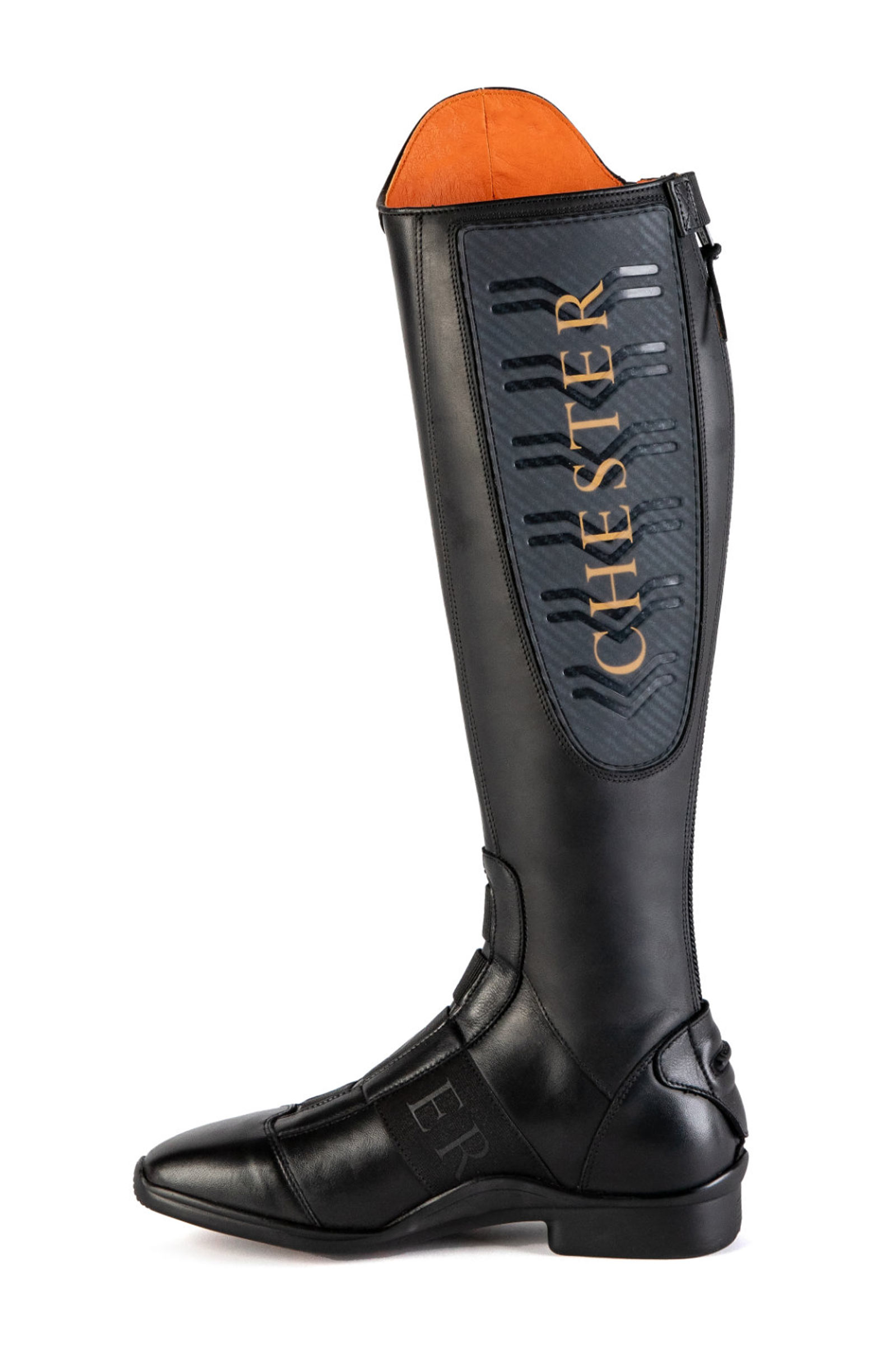 Estas botas de equitación, diseñadas para la práctica de salto de obstáculos, combinany seguirdad, e están inspiradas en la comodidad de una bailarina. Fabricadas en cuero suave de alta calidad y reforzadas con un panel lateral de TPU con grabado CHESTER, garantizan el contacto ideal con el caballo. El forro vegano es antibacteriano y transpirable. La plantilla anatómica es extraíble y se adapta al pie del jinete, mientras que la suela antideslizante de TPU con doble inyección ofrece mayor estabilidad y control sobre cualquier superficie.